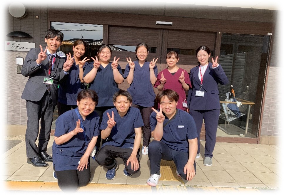 そんぽの家 京都羽束師には、明るく元気なスタッフが数多く在籍し、笑顔のあふれる雰囲気に包まれています。