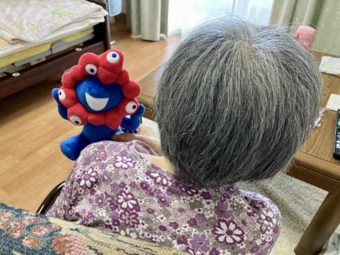 ある日、K様がお土産の「みゃくみゃく」のぬいぐるみを持って食堂に登場☆ミ