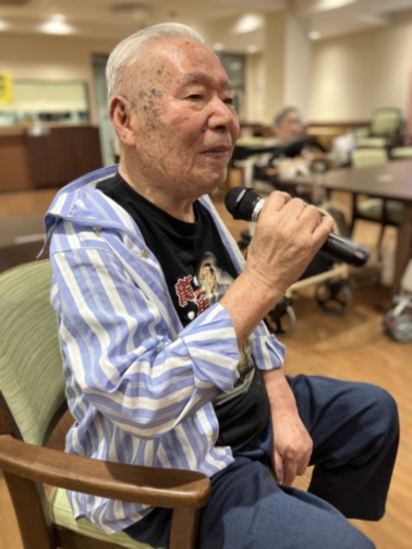 立って笑顔で熱唱!見事な歌声で歌い慣れておられるのがわかります。