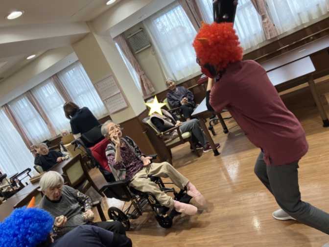 さて昼食後、アクティビティが始まる頃、入居者様が食堂に集まってこられると…