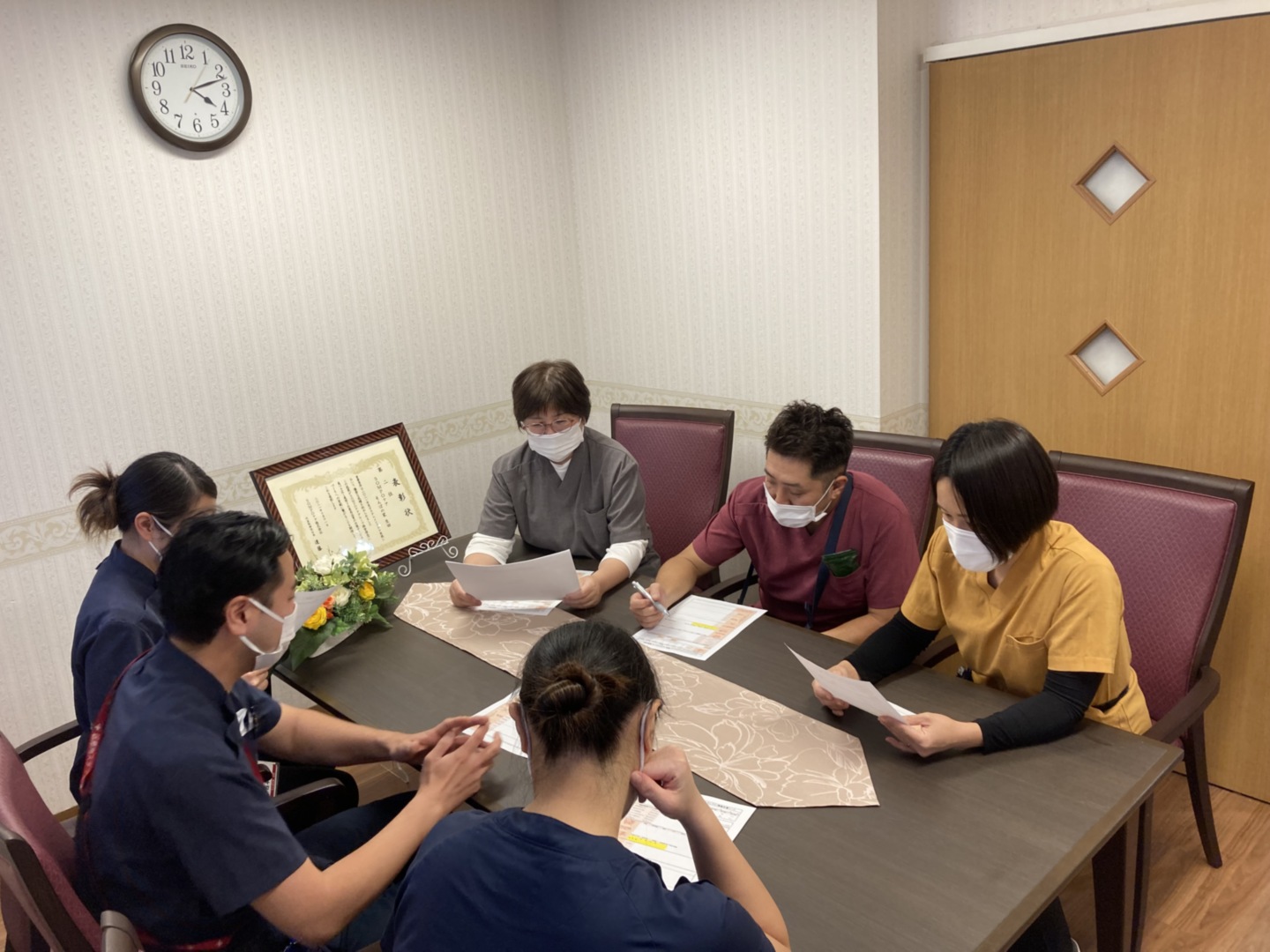 介護、看護が協力して、ご利用者さまについての情報共有を行ない、状態の変化を迅速に医療機関に伝えます。
