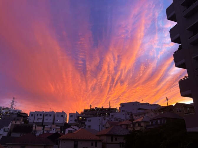 自宅に戻ったら夕日も綺麗で、