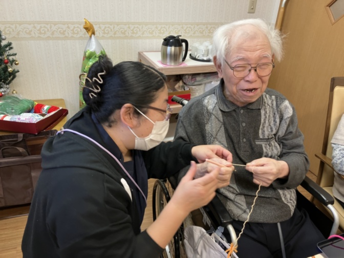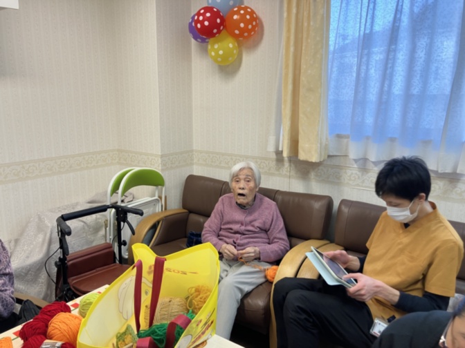 女性のご利用者さまが「奥様は編んでらしたの?」と伺うと