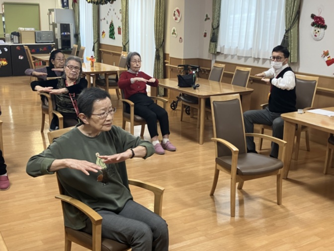 副ホーム長も一緒に参加されて、皆様にお声掛けされながら体を動かしていました。
