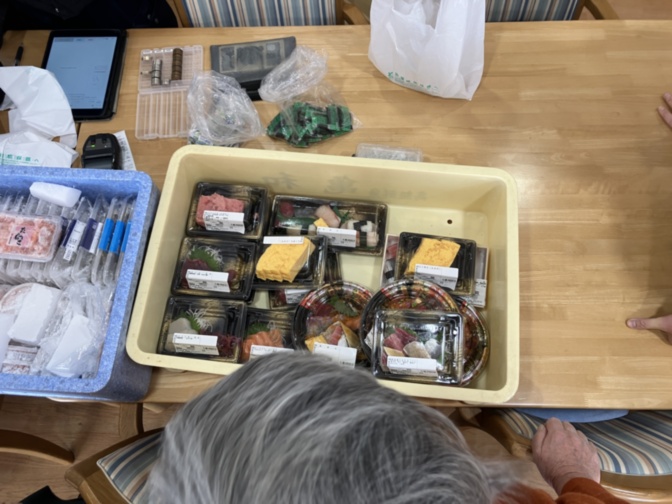魚卵や佃煮、マリネなどの珍味のほか、しらすが入ったふりかけ、お刺身や握り寿司やちらし寿司など、豊富な品数でご入居者さまをお出迎えしています♬