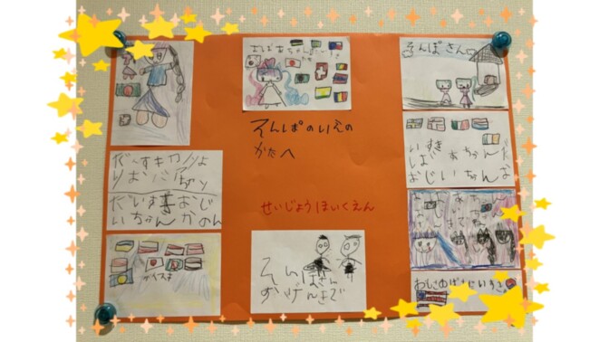 その裏側で、入居者様に保育園の皆様へのプレゼント