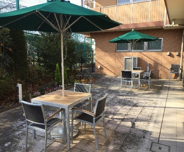 公園に隣接しており、食堂から出入りの出来る中庭で外気浴や気分転換が可能です♪