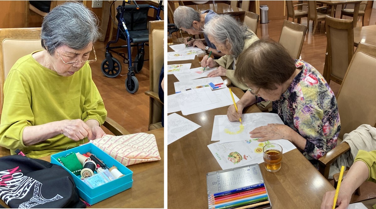 ホーム内で毎月手芸・塗り絵・折り紙・貼り絵・書道などご入居者様のご要望に合わせて手先を使っていただくクラブ活動も楽しんでいただけます。