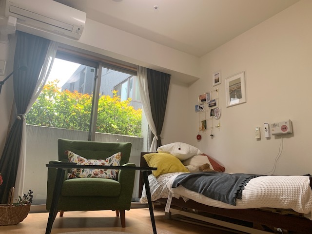 全室個室なのでご面会は24時間いつでもお気軽にお越しいただけます。居室にトイレや洗面台もあり、ご自宅と同様のプライベート空間を確保。また、緊急通報装置が各所に設置されており安心です。