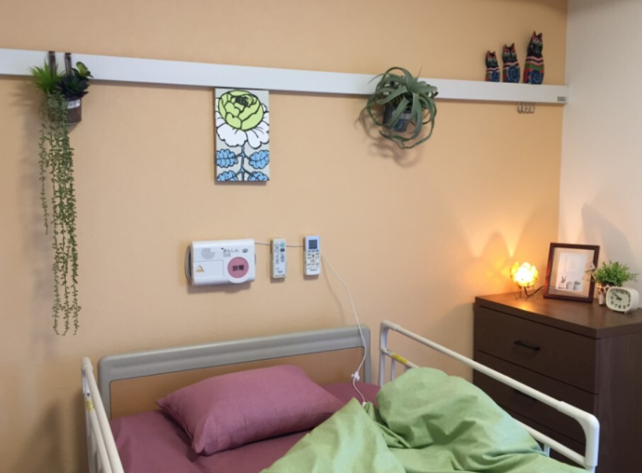 全室個室なのでご面会は24時間いつでもお気軽にお越しいただけます。居室にトイレや洗面台もあり、ご自宅と同様のプライベート空間を確保。また、緊急通報装置が各所に設置されており安心です。