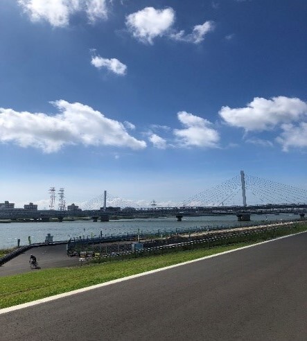 目の前に荒川の土手。