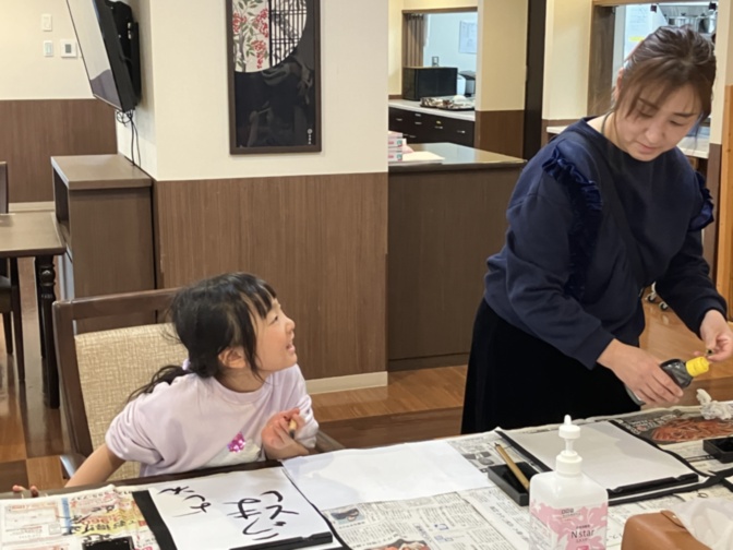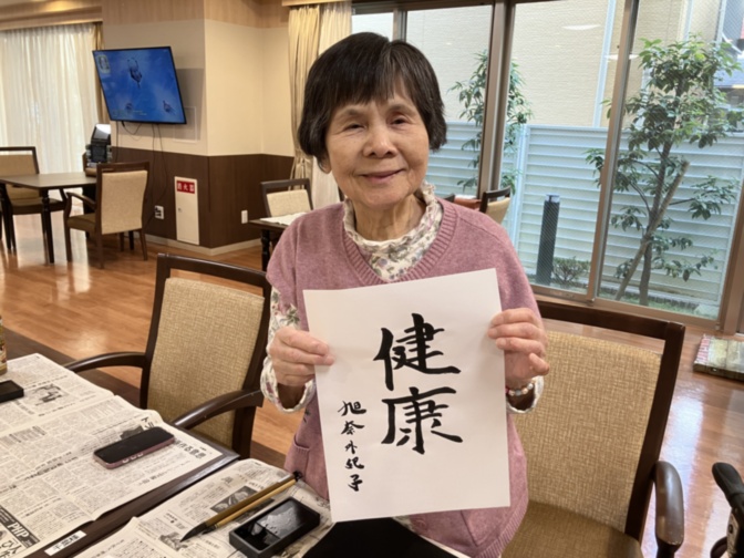 ご入居者様も一緒に書き初めをしました。