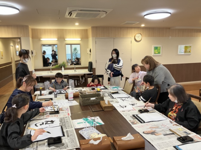 本日の交流イベントは書き初めでした。
