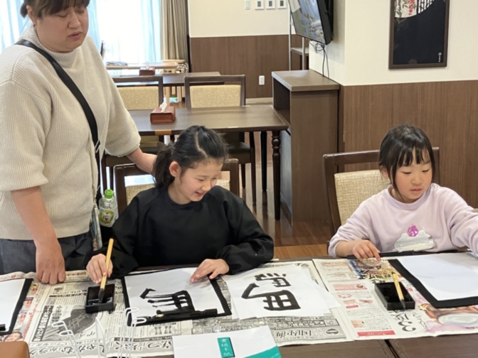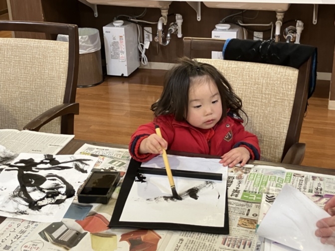 新しい一年の始まりに書き初めを楽しんでいただきました。