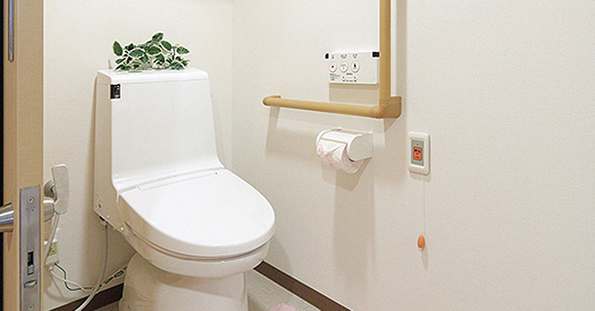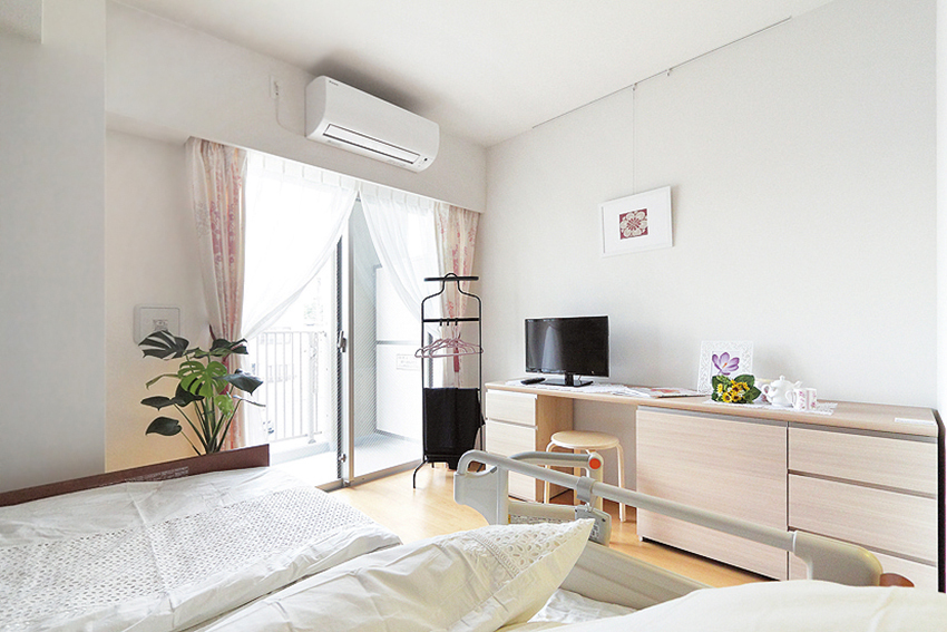 全室個室なのでご面会は24時間いつでもお気軽にお越しいただけます。居室にトイレや洗面台もあり、ご自宅と同様のプライベート空間を確保。また、緊急通報装置が各所に設置されており安心です。