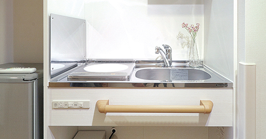 ※一部ホームでは居室にトイレが無い場合もあります各居室にミニキッチンが備え付けになっており、お好きな料理を作ってお召し上がりいただくことが可能です。