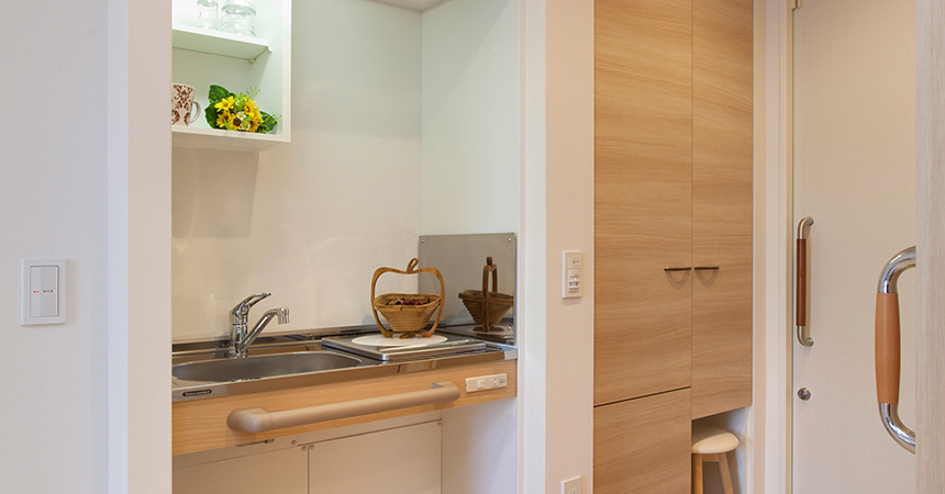 ※一部ホームでは居室にトイレが無い場合もあります各居室にミニキッチンが備え付けになっており、お好きな料理を作ってお召し上がりいただくことが可能です。