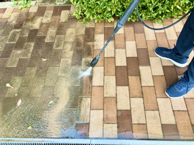 高圧洗浄機でホーム前を丁寧に清掃し、見違えるほど美しく生まれ変わりました。
