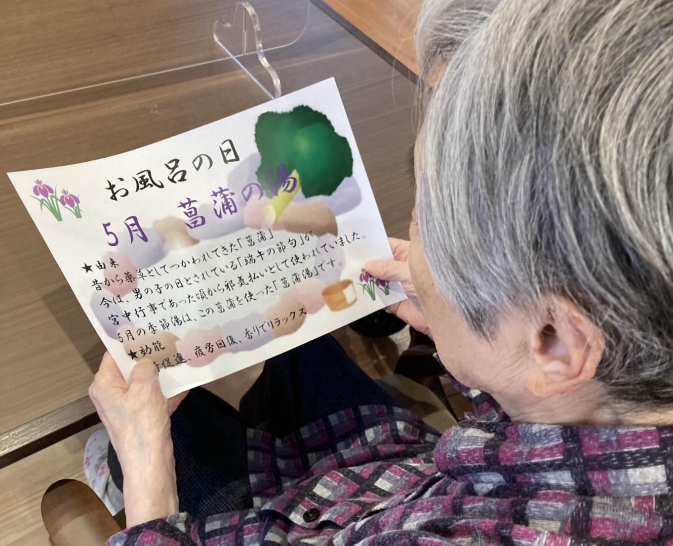 【お風呂の日】として、毎月季節の風呂など四季を感じる行事を取り入れ、楽しんでいただいております。