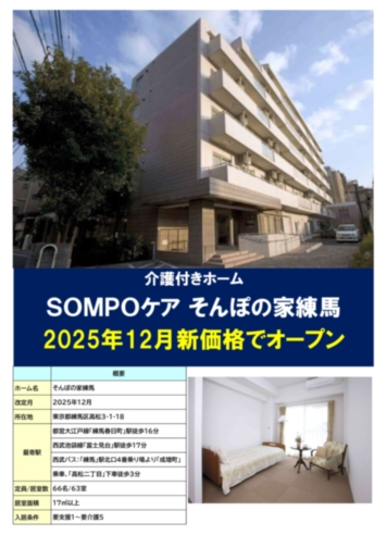 練馬区高松にある有料老人ホームです。要支援から要介護の方まで、