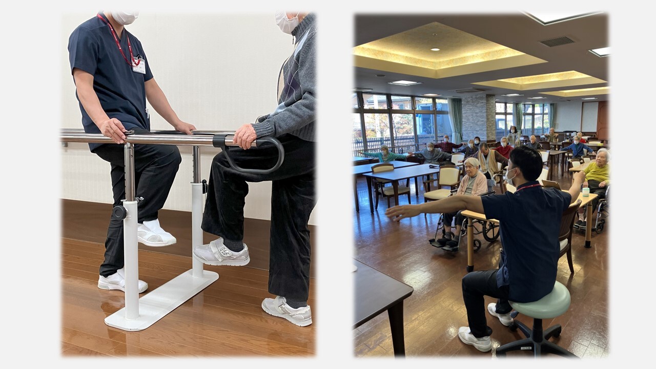 ホーム専属の理学療法士がご入居者さまに合わせたリハビリテーションを行わせていただきます。