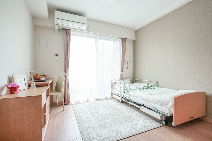 全室個室なのでご面会は24時間いつでもお気軽にお越しいただけます。居室にトイレや洗面台もあり、ご自宅と同様のプライベート空間を確保。また、緊急通報装置が各所に設置されており安心です。
