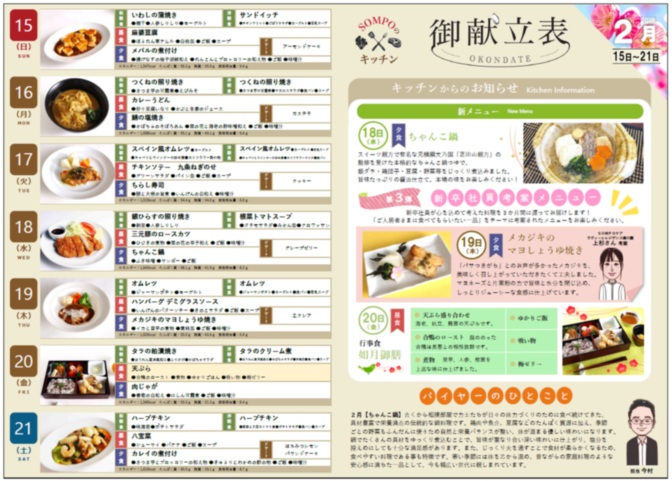 咀嚼力、嚥下力に合わせたやわらか食など、お身体の状態に合わせた形態食をご用意。高血圧や心臓病などの病態別食や、減塩食などにも対応いたします。食べる楽しみを感じ続けていただけるよう、日々メニューの開発に努めています。