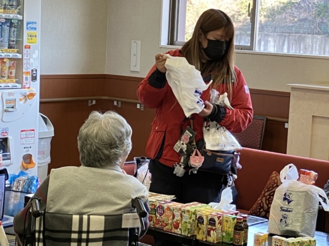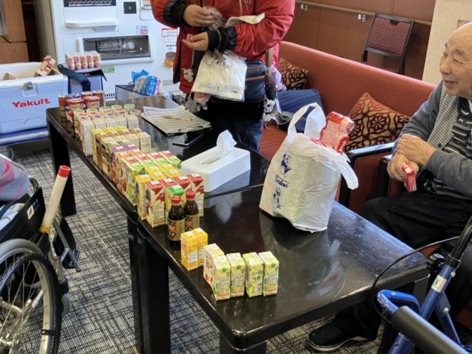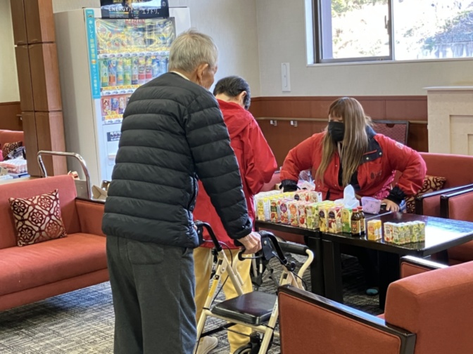 次々と2階ラウンジにご入居者さまが買いに来られて