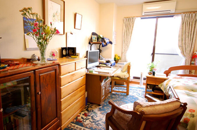 全室個室なのでご面会は24時間いつでもお気軽にお越しいただけます。居室にトイレや洗面台もあり、ご自宅と同様のプライベート空間を確保。また、緊急通報装置が各所に設置されており安心です。
