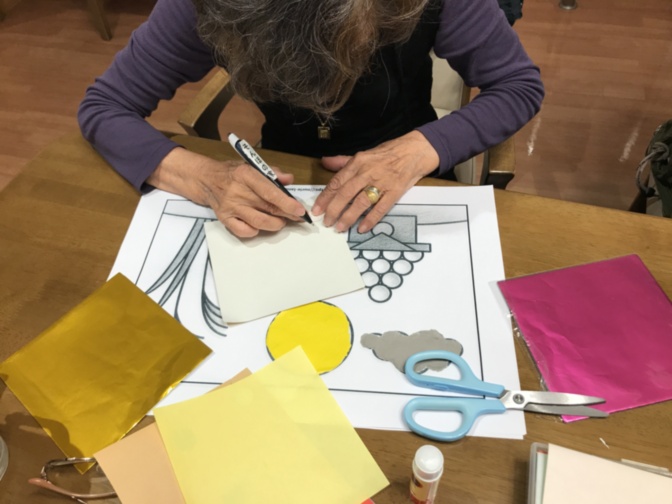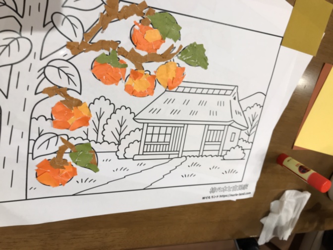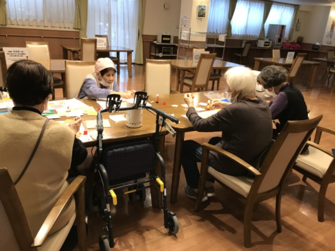 時間が空いているご入居者様にお声掛けし、ちぎり絵のレクレーションに参加して頂きました。