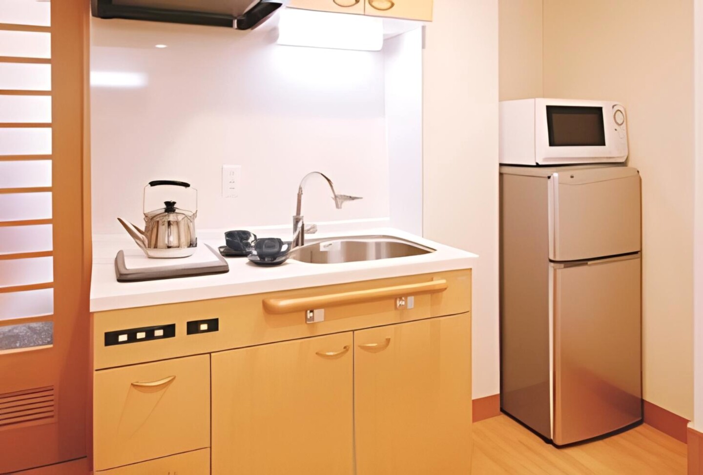 ※一部ホームでは居室にトイレが無い場合もあります各居室にミニキッチンが備え付けになっており、お好きな料理を作ってお召し上がりいただくことが可能です。
