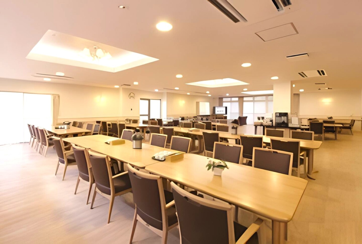 全室個室なのでご面会は24時間いつでもお気軽にお越しいただけます。居室にトイレや洗面台もあり、ご自宅と同様のプライベート空間を確保。また、緊急通報装置が各所に設置されており安心です。