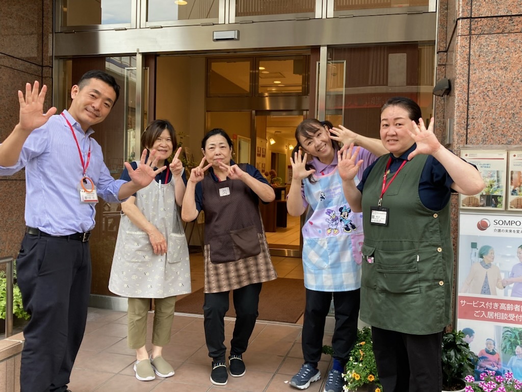 そんぽの家S神戸新長田には訪問看護事業所、居宅介護支援事業所(ケアマネ事務所)、訪問介護事業所(ヘルパー事務所)と3つの事業所が併設し、連携をとっております。