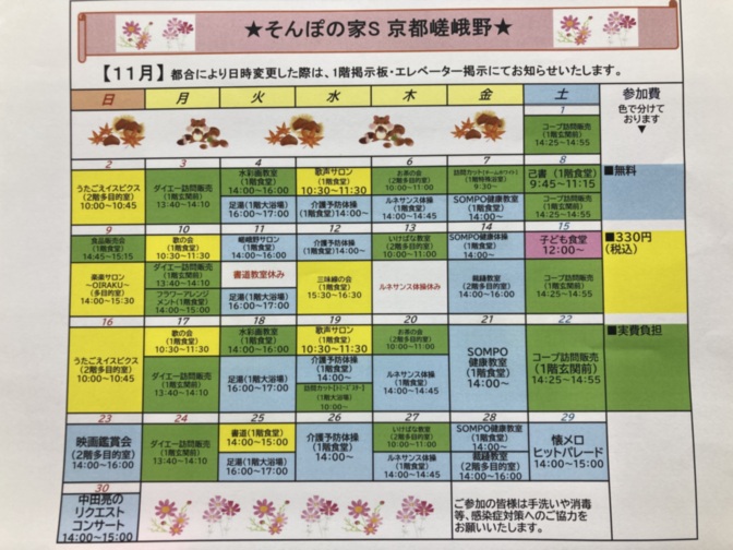 地域との交流も大切にしており、毎週、右京区の介護予防推進センターと協力し、地域住民の方々をお招きして一緒に体操を行っています。
