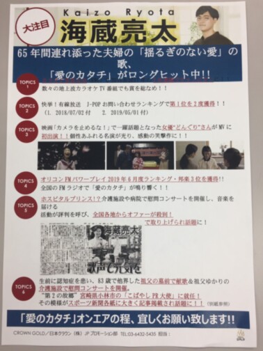 海蔵亮太さんのコンサートを2019年9月30日(月)午後にそんぽの家S多摩川で開催する事が決定致しました!!