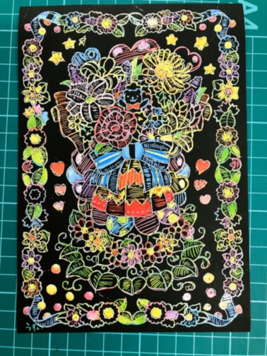 その上から真っ黒なクレヨンで漆黒に塗りつぶし。