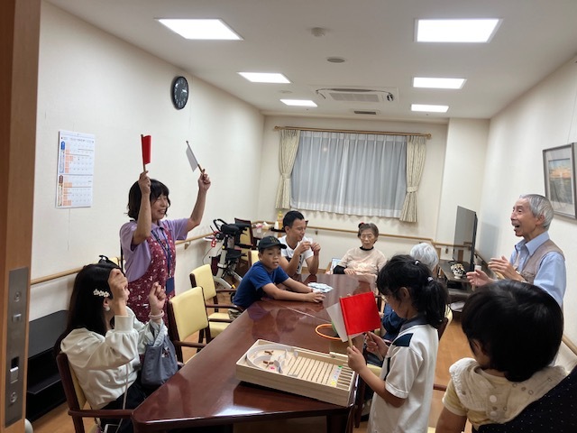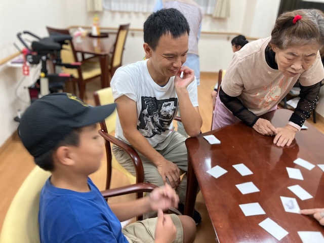 ホームの中では入居者様も一緒に神経衰弱。実はこのカード手作りなんですよ。入居者様が作りました。そのクオリティーの高さにみんなビックリ。