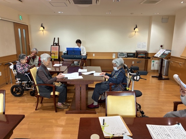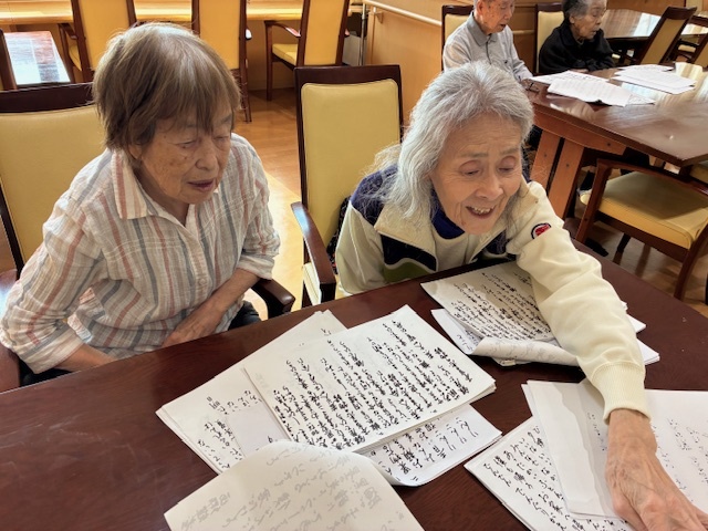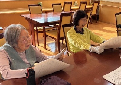 歌詞カードを見ながら、声を合わせて歌いましょう!