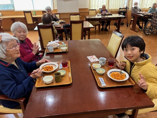 まずは、入居者様と一緒に色々お話しながらの昼食です