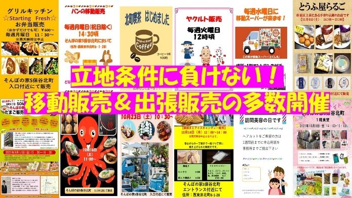 そんぽの家S保谷北町は近隣にお店がないという立地ですが、移動スーパーをはじめパン屋、弁当屋、花屋など様々な移動販売があります。