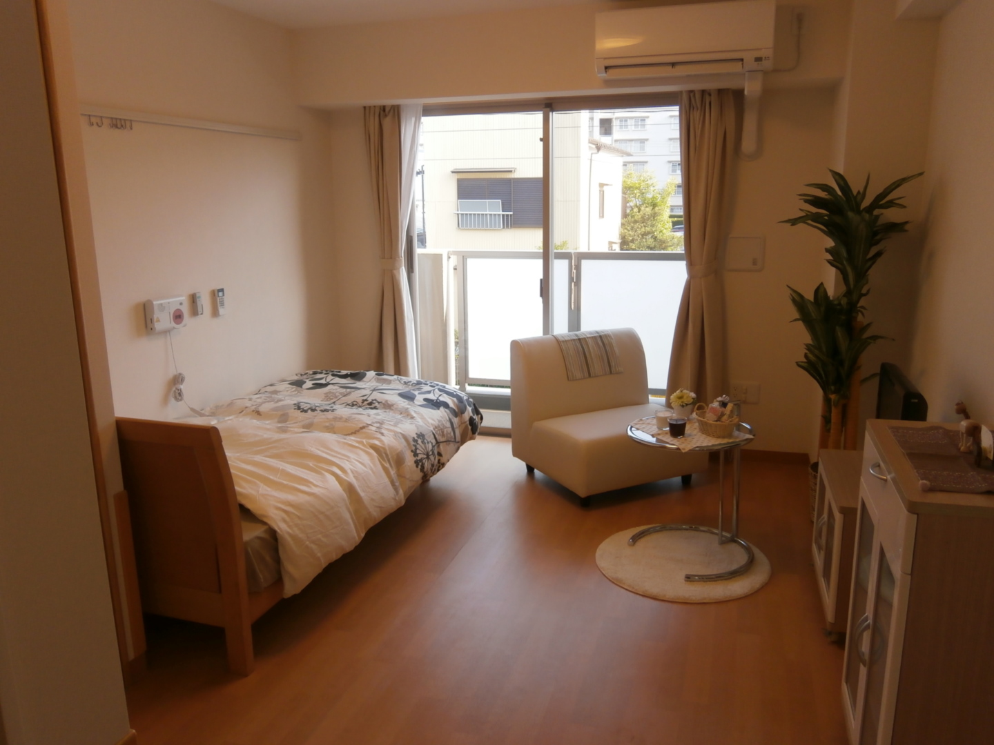 全室個室なのでご面会は24時間いつでもお気軽にお越しいただけます。居室にトイレや洗面台もあり、ご自宅と同様のプライベート空間を確保。また、緊急通報装置が各所に設置されており安心です。