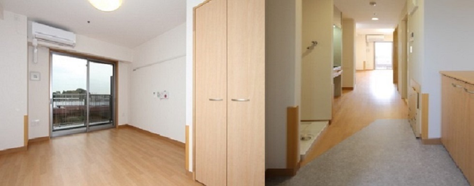 全室個室なのでご面会は24時間いつでもお気軽にお越しいただけます。居室にトイレや洗面台もあり、ご自宅と同様のプライベート空間を確保。また、緊急通報装置が各所に設置されており安心です。