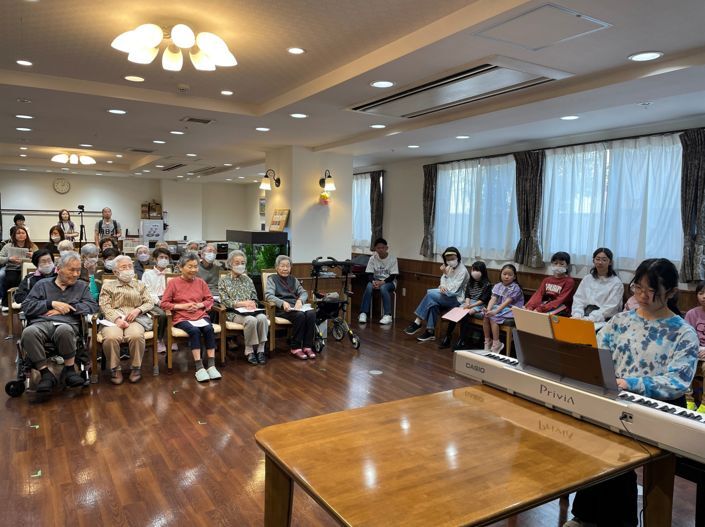 写真は近隣の小学生を招いてのピアノ演奏会の様子です。