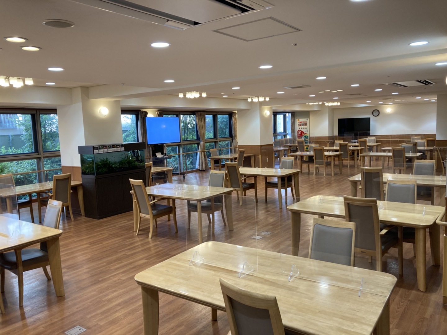 そんぽの家S城東天王田の特徴は、1階リビングが明るく開放的な共有空間として、広くゆったりと食事を楽しんでいただけるスペースがあることです。