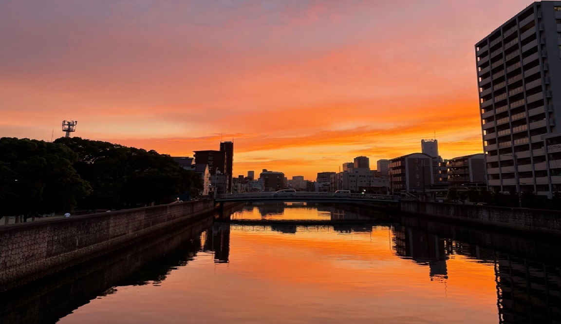 そんぽの家S城東天王田の横を流れる第二寝屋川からの黄昏風景です。散歩コースでもあり、感慨深いものがございます。