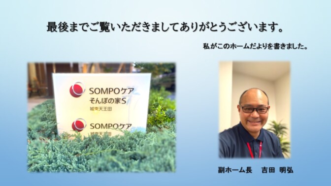 住み慣れたお部屋で最期を迎えたいというご入居者さまのご要望により、看取りに対応しています。事前に看護処置の準備、医療機関との連携の確認、ご家族さまとの連絡体制の確保などを行い、心を込めて、身体的、精神的苦痛、苦悩の緩和に努めます。