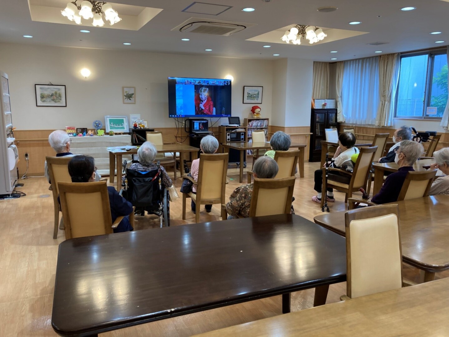 体操、手芸、書道、映画、大きなスクリーンを使ったオンラインアクティビティなど、各種アクティビティが毎日食堂で開催されております。