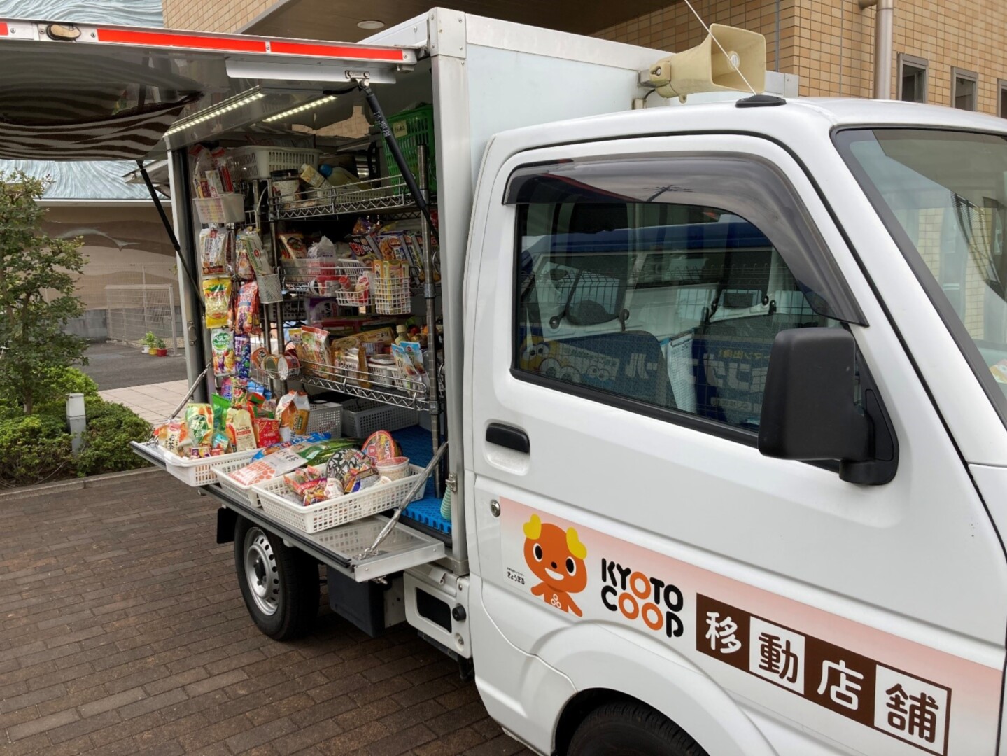そのほか、毎週木曜日に京都生活協同組合コープさんの移動販売車によるお買い物を行っていただくことが可能です。事前に連絡をすると店舗と同じ商品や定期的な物品の購入をしていただくことができます。