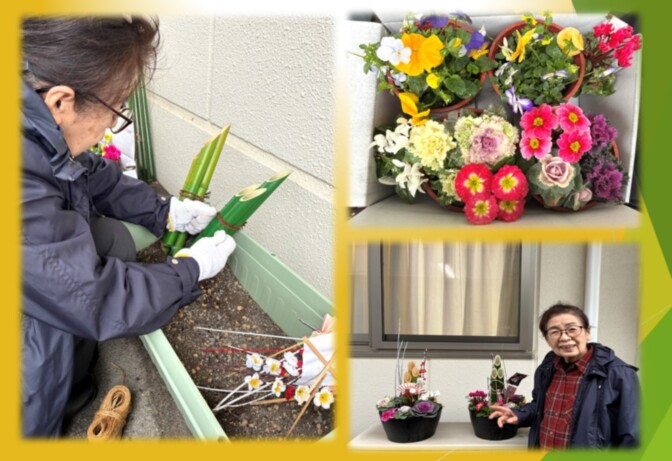 年末の恒例行事として、利用者様に門松づくりをお手伝いいただきました。