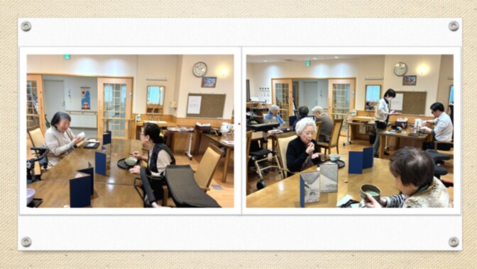 お茶会では、温かいお茶と茶菓子をご用意し、
